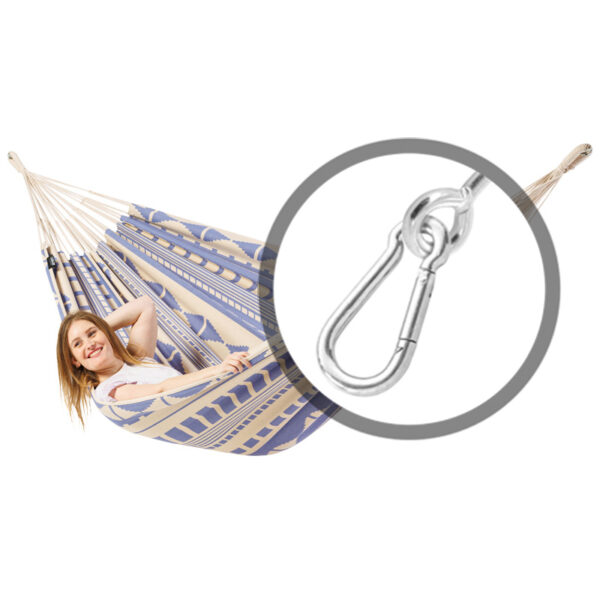 Gecombineerd met het multifunctionele ophangsysteem voor alle hangmatten. Bevestig je hangmat gemakkelijk aan muren, plafonds, balken of bomen. In de set zit alles wat je nodig hebt om je hangmat op te hangen en is van kwalitatief hoogwaardig materiaal.
