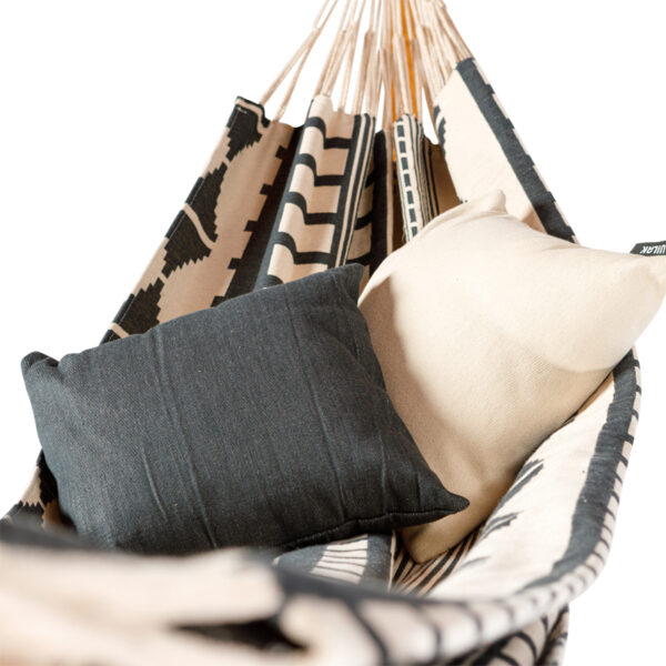 Bij Luilak zijn we er trots op dat we hangmatten maken die zowel luxe als duurzaamheid bieden. Door de jacquard weeftechniek en een weefdichtheid van 500 gram per vierkante meter biedt de hangmat niet alleen comfort maar ook uitzonderlijke kwaliteit.
