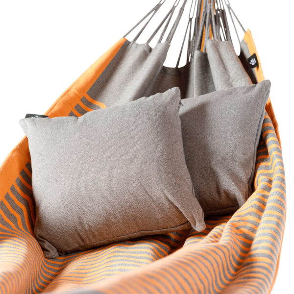 Bij Luilak zijn we trots op het maken van hangmatten die zowel luxe als duurzaamheid belichamen. Onze jacquard geweven hangmat zet een hoge standaard met een weefdichtheid van 500 gram per vierkante meter, en zorgt niet alleen voor comfort maar ook voor uitzonderlijke kwaliteit.