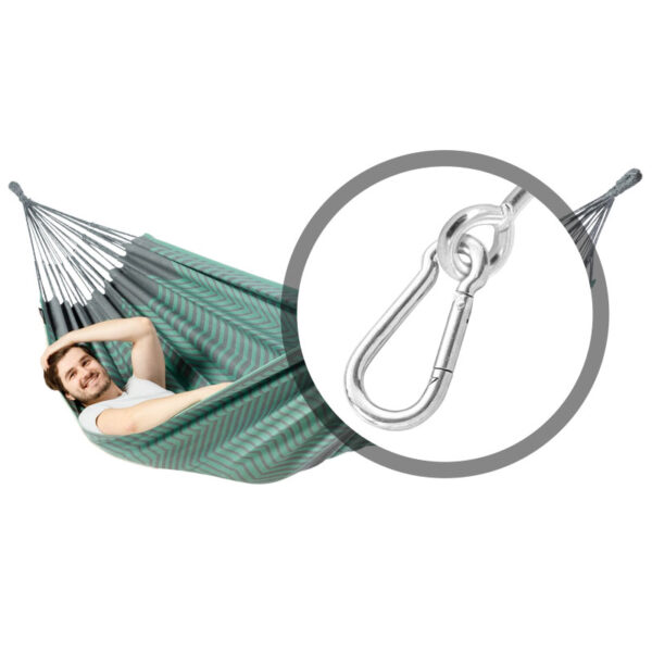 Gecombineerd met het multifunctionele ophangsysteem voor alle hangmatten. Bevestig je hangmat gemakkelijk aan muren, plafonds, balken of bomen. In de set zit alles wat je nodig hebt om je hangmat op te hangen en is van kwalitatief hoogwaardig materiaal.