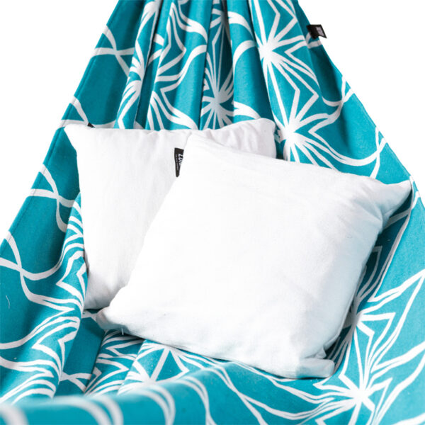 Kom tot rust in hangmat Stars of Arcadia. Droom weg in deze hangmat van Luilak en droom van idyllische valleien, kristalheldere beekjes en een wereld in perfecte natuurlijke harmonie. Arcadia, het mythische land van vrede en eenvoud, leeft voort in je eigen achtertuin. De Stars of Arcadia heeft een mix van Harbour Blue en wit, geïnspireerd op sterren die schijnen boven de serene blauwe landschappen van jouw persoonlijke Arcadia. Deze prachtige blauwgroene hangmat biedt de rust en ruimte die je nodig hebt om helemaal weg te dromen.