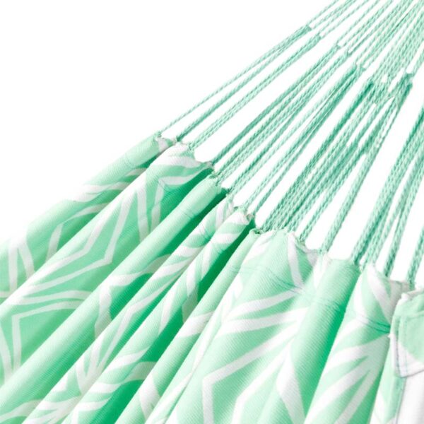Kom helemaal tot rust met hangmat Stars of Paradise. In deze hangmat van Luilak dommel je weg, denkend aan een heerlijke plek, een levendige groene tuin en helder water. De Stars of Paradise is mintgroen met wit. Geïnspireerd door de sterren van je eigen paradijs. Deze prachtige mintgroene hangmat geeft je de rust en ruimte die je nodig hebt om helemaal weg te dromen.